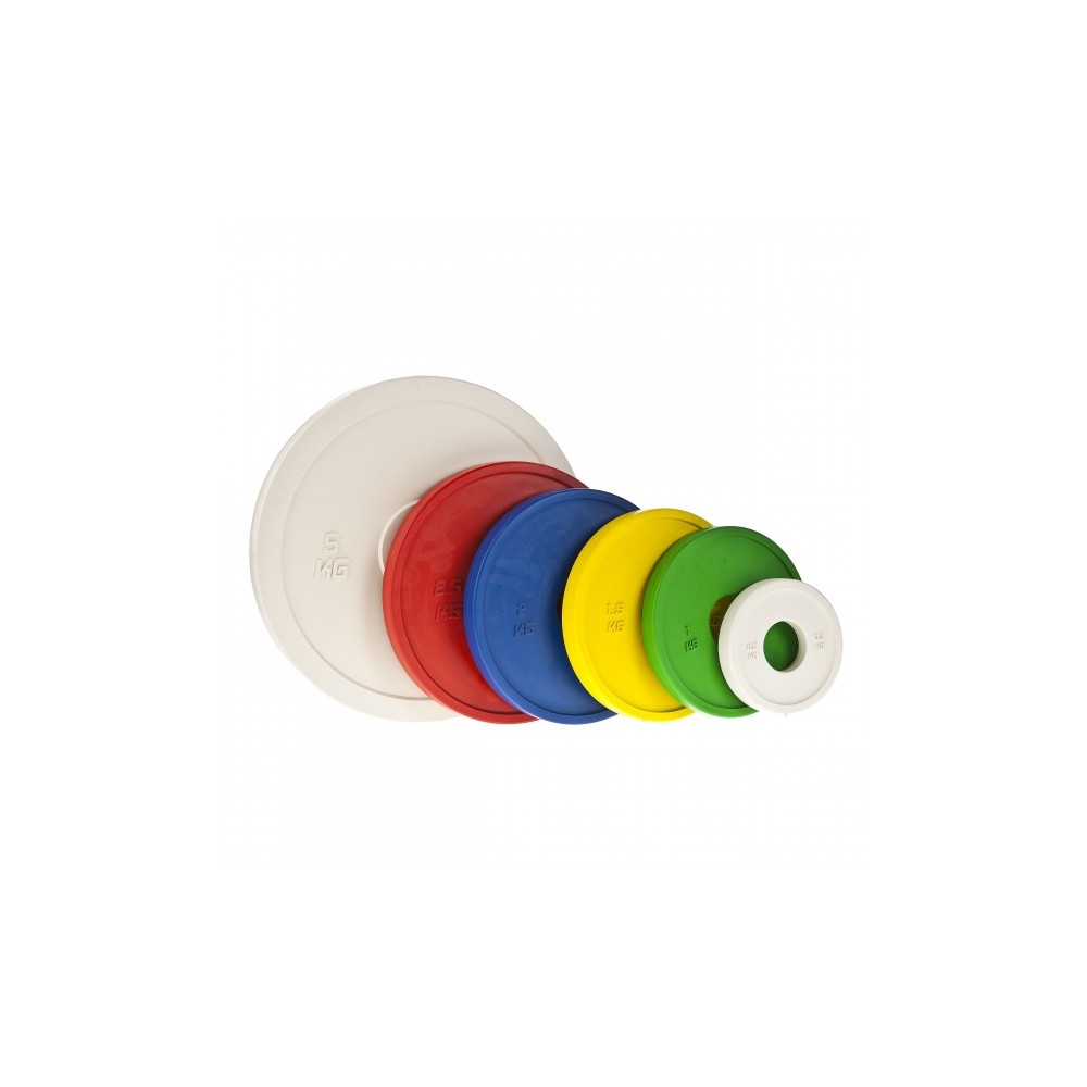 Prisen er pr. skive eller for et komplet sæt bestående af 2x0,5-2x1-2x1,5-2x2-2x2,5kg - i alt 15 kg. El. 2x0,5-2x1-2x1,5-2x2-2x2,5-2x5kg - i alt 25kg